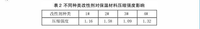 保溫材料的壓縮強度是其重要的性能指標,當在屋面使用聚氨酯材料作為保溫材料時,壓縮強度指標極為重要。結合上述實驗數據匯總數據,表2為不同種類改性劑對保溫材料壓縮強度影響。
