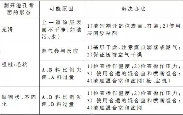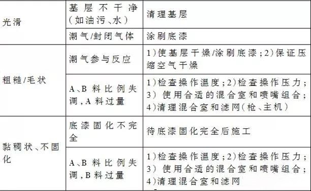 SPUA涂層與基層之間及涂層之間鼓泡原因與解決辦法見下表。